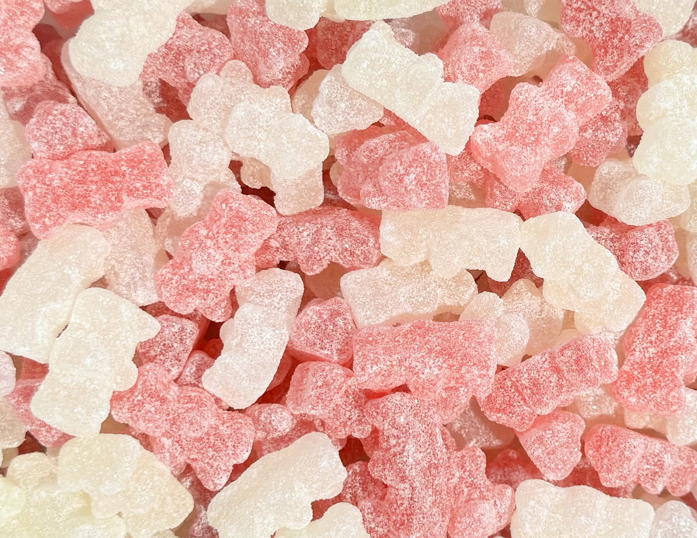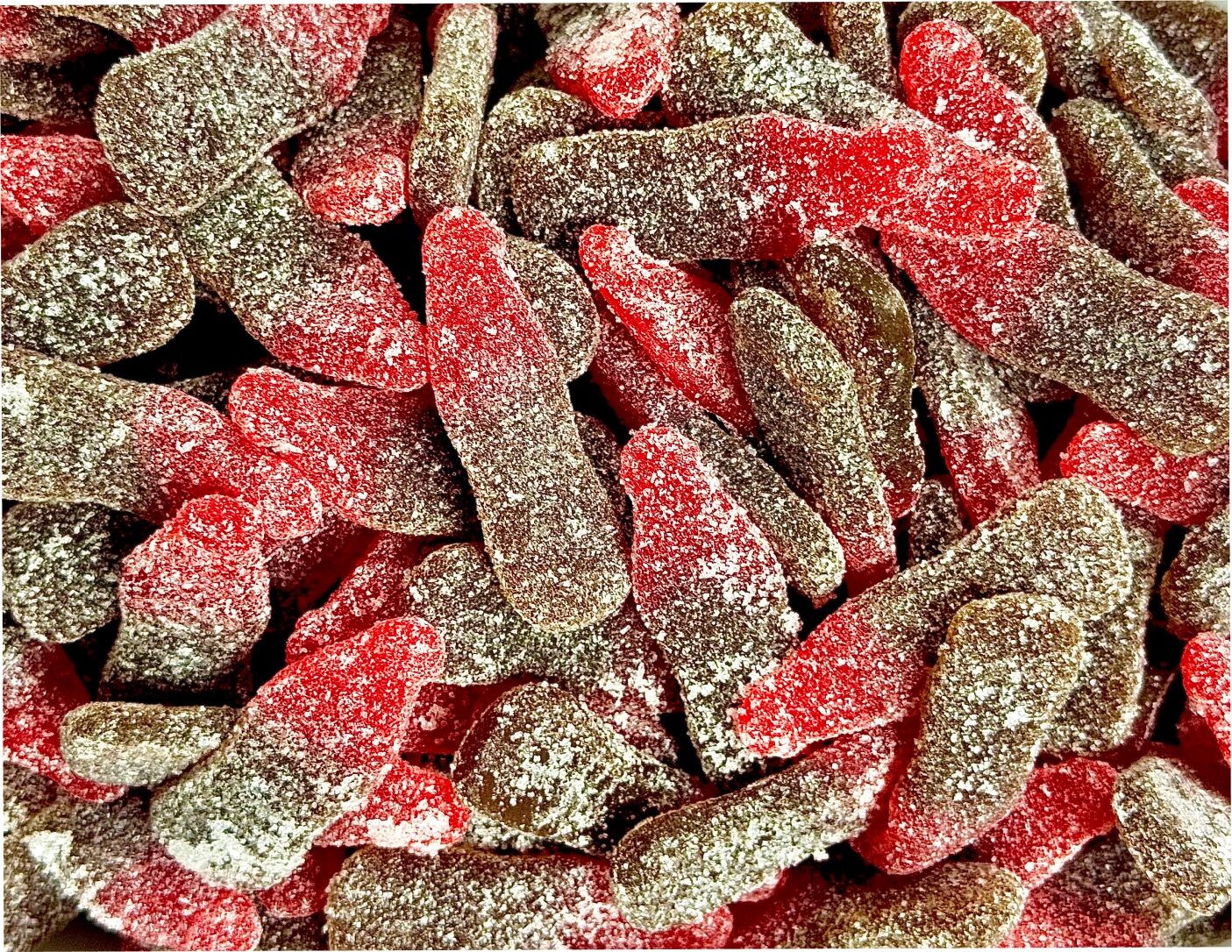 Sugar, Glucose-Fructose Syrup, Wheat Flour (Gluten), Water, Corn Starch, Dextrose, Acidulants (E330, E296), Gelatine, Emulsifier (E471), Palm Fat, Flavours, Preservative (E202), Colour (E120).
