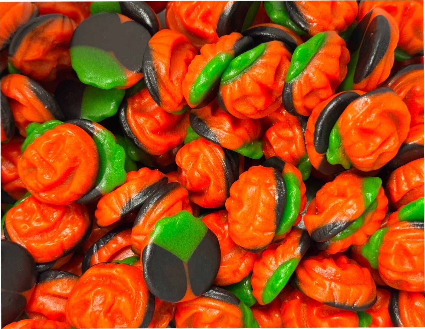 Glucose Syrup, Sugar, Corn Starch, Gelatine, Acids (Malic, Acetic), Flavourings, Fruit and Vegetable Concentrates (Radish, Apple, Pumpkin, Tomato, Safflower, Lemon, Blackcurrant, Carrot), Glazing Agent (Carnauba Wax, Beeswax), Colours (E100, E141, E153, E160c).