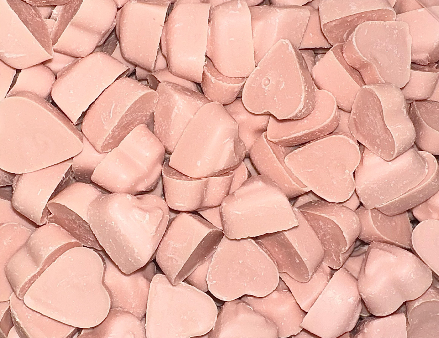 Sugar, Vegetable Fat (Palm), Whey Powder (from Milk), Wheat Flour, (with Calcium, Iron, Niacin, Thiamin), Wheat Starch, Glucose Syrup, Emulsifier ( Rapeseed Lecithin), Natural Flavourings, Glazing Agent (Beeswax), Natural Colour (Curcumin), Colouring Foods (Beetroot Juice Concentrate, Spirulina Extract).
