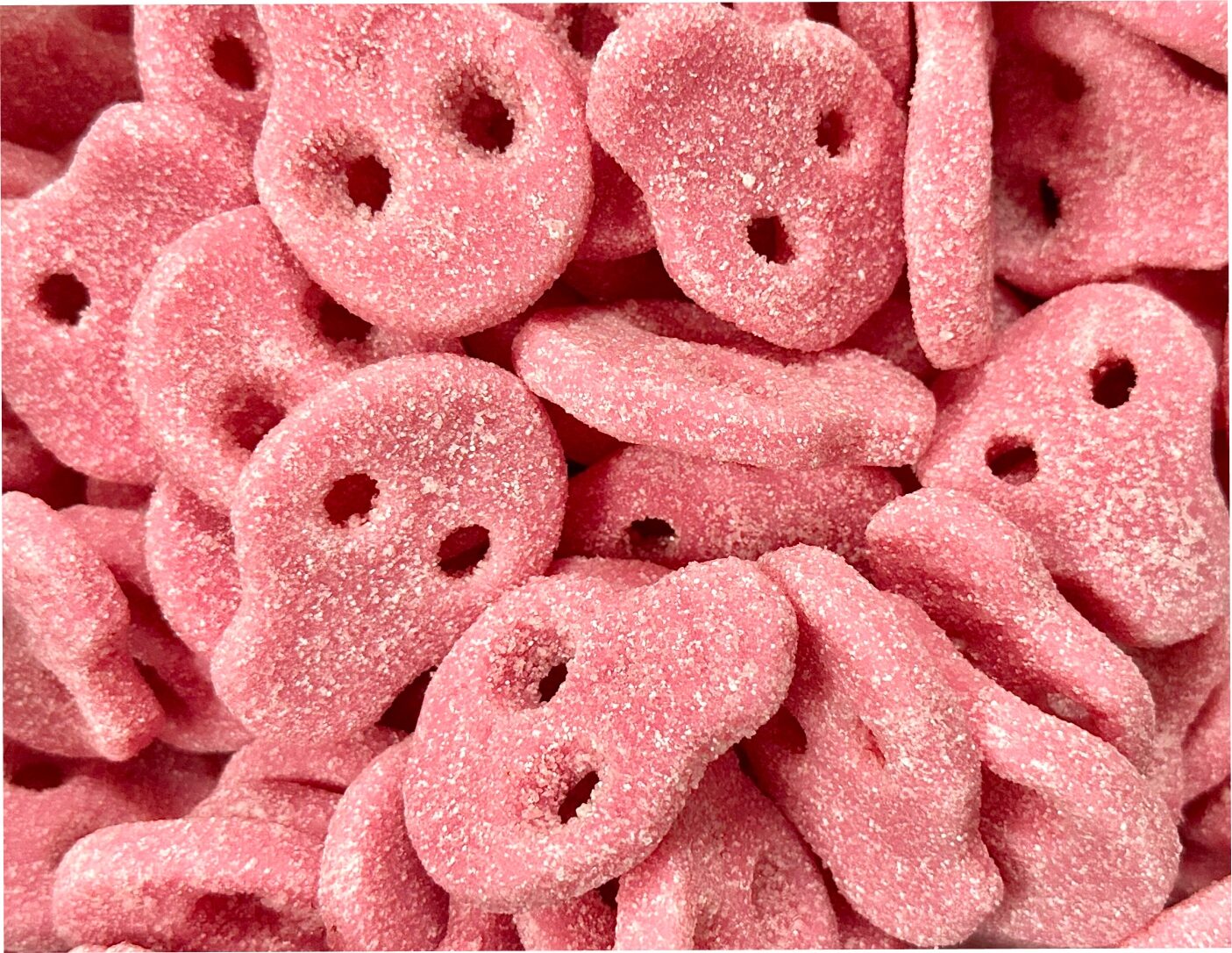 Glucose Syrup, Sugar, Water, Potato Modified Starch, Gelatine, Acidulants (E330, E296, E270), Flavours, Colours (E129, E516), Vegetable Oil (Palm), Glazing Agent (Carnauba Wax). Warning: E129 may have an adverse effect on activity and attention in children.