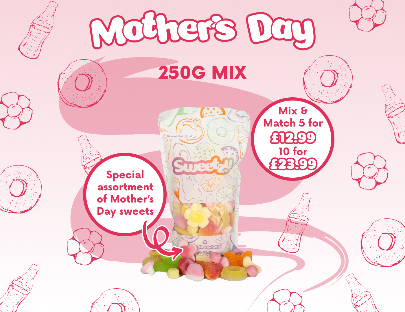 Looking for the perfect gift? Our 250g Snack Pouch Mothers Day Mix is a handpicked selection of jelly, fizzy, and foamy sweets, guaranteed to satisfy any sweet tooth! Whether it’s a thoughtful present or a little treat for yourself, this mix is a must-have.