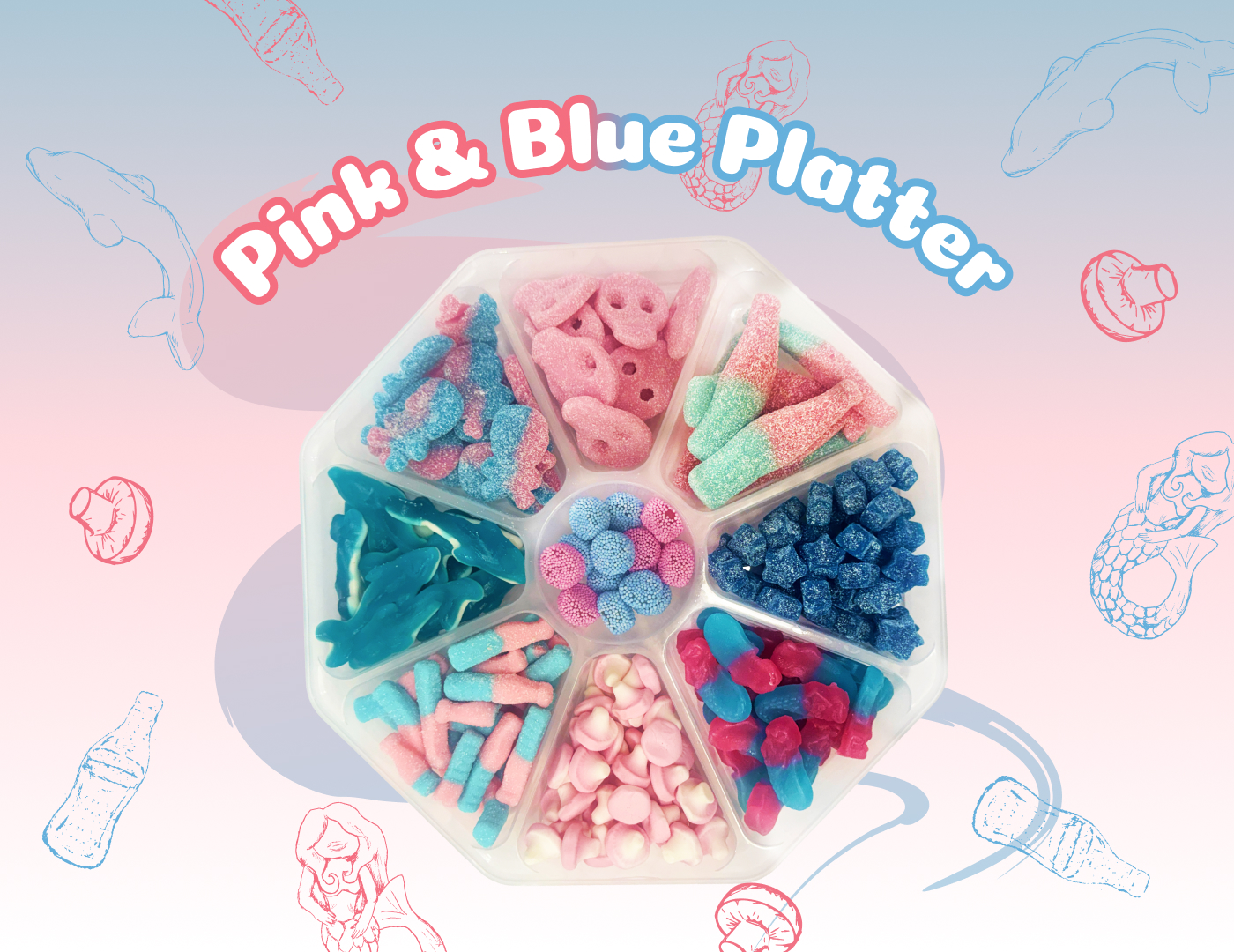 This brand new platter is packed with a mix of bubblegum-flavoured sweets alongside classic favourites. Featuring a gorgeous blend of blue and pink treats, it creates a cute aesthetic that’s perfect for anyone who loves a pop of colour. Ideal for birthdays, parties, or any special occasion!