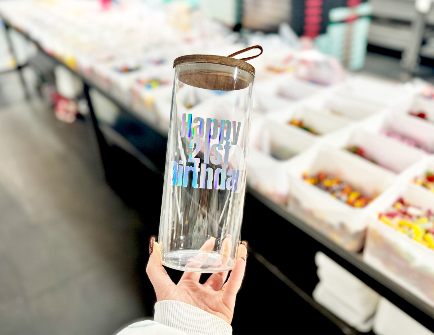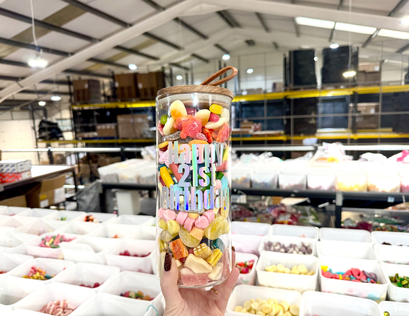 Customise your own jar and make it personal to you. Our Jars are 2 litres and fit a 1.1kg sweets perfectly. You have 3 lines of text to put your own stamp on things and an array of colours to choose from.