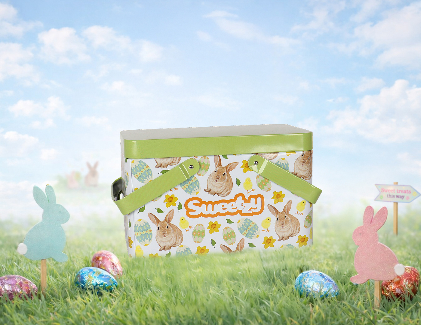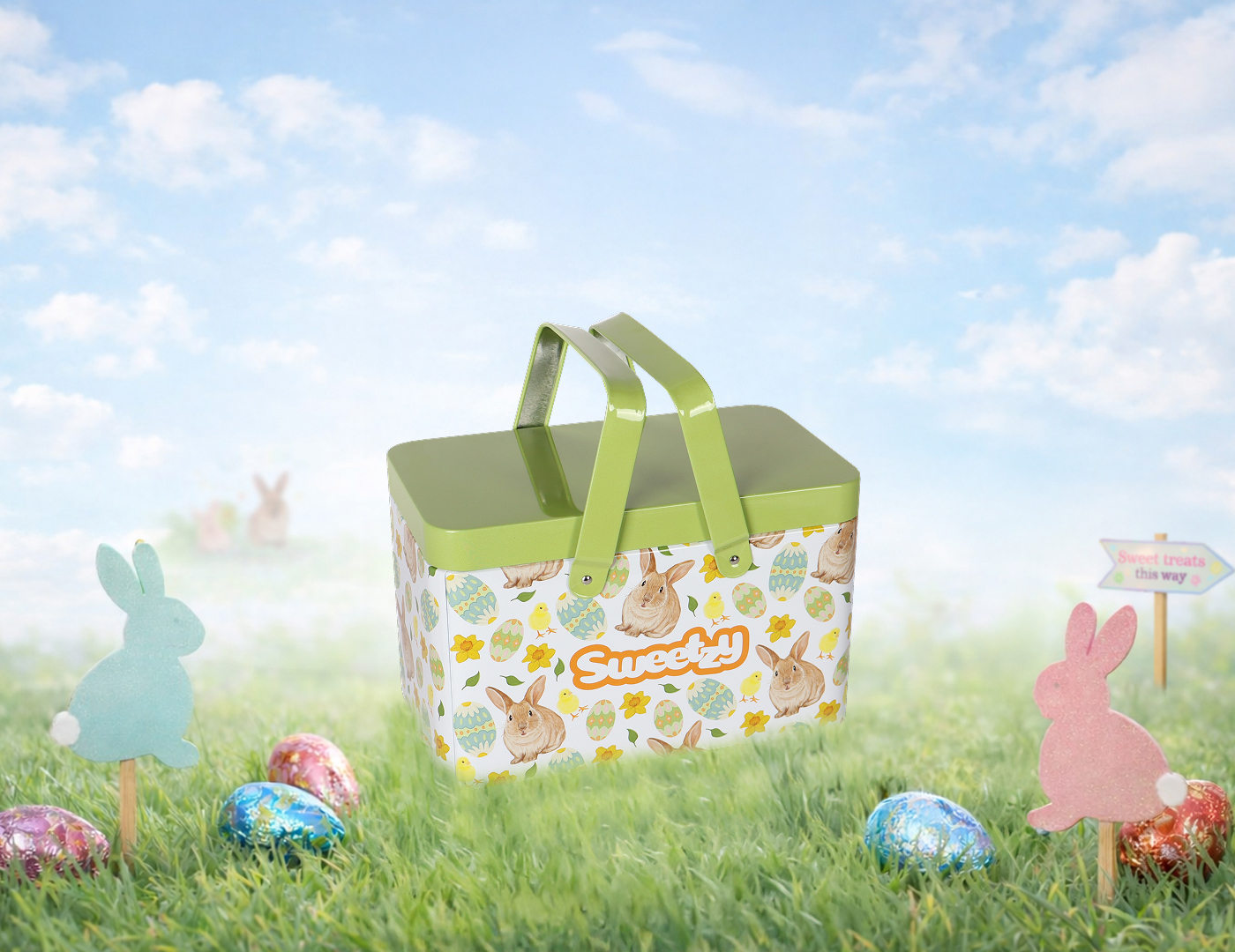 • Easter Tin Basket – A one-of-a-kind Sweetzy basket shaped easter tin!