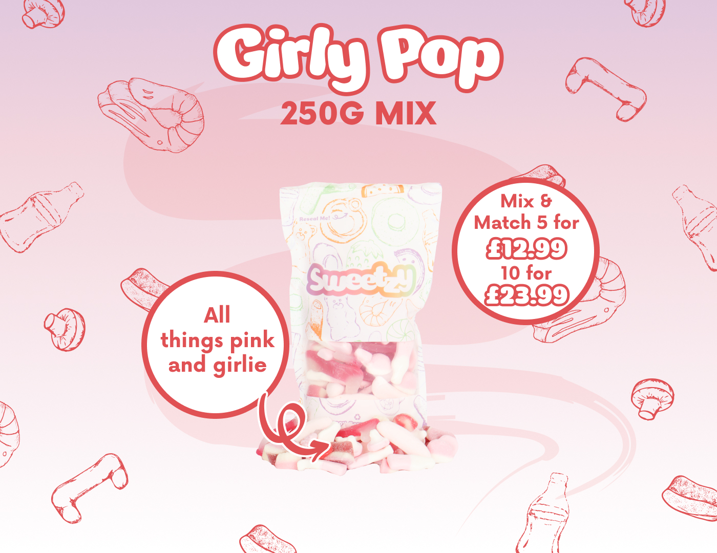 Specially put together with a love for all things pink and sweet, this mix features 10 handpicked favourites packed by our team. From fruity to fizzy, every bite delivers something a little extra.