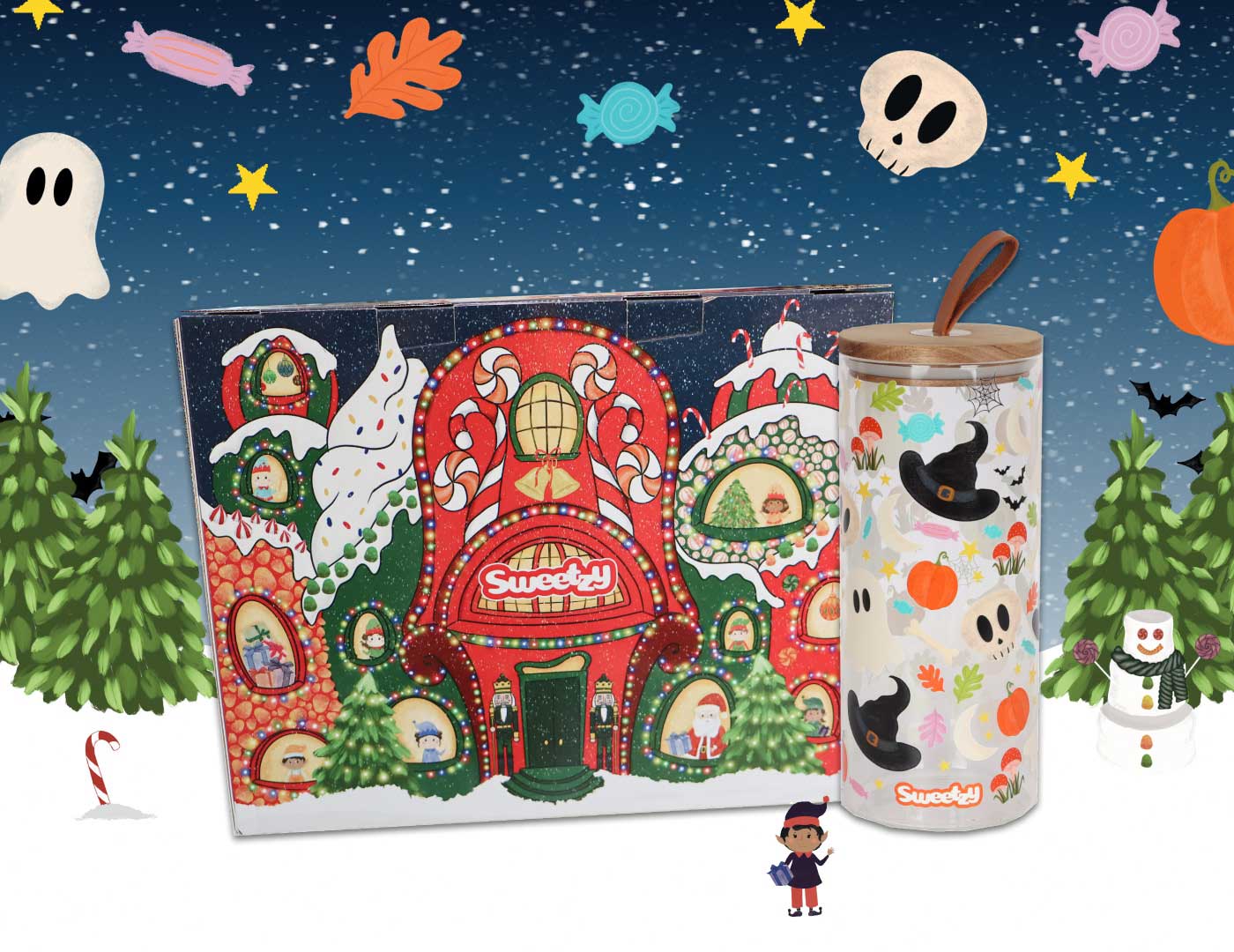 Bundle up! Order our brand new Halloween Glass Sweet jAR along with the best-selling Sweetzy Christmas Advent Calendar, and we’ll ship them together – saving you on shipping and making your life easier.