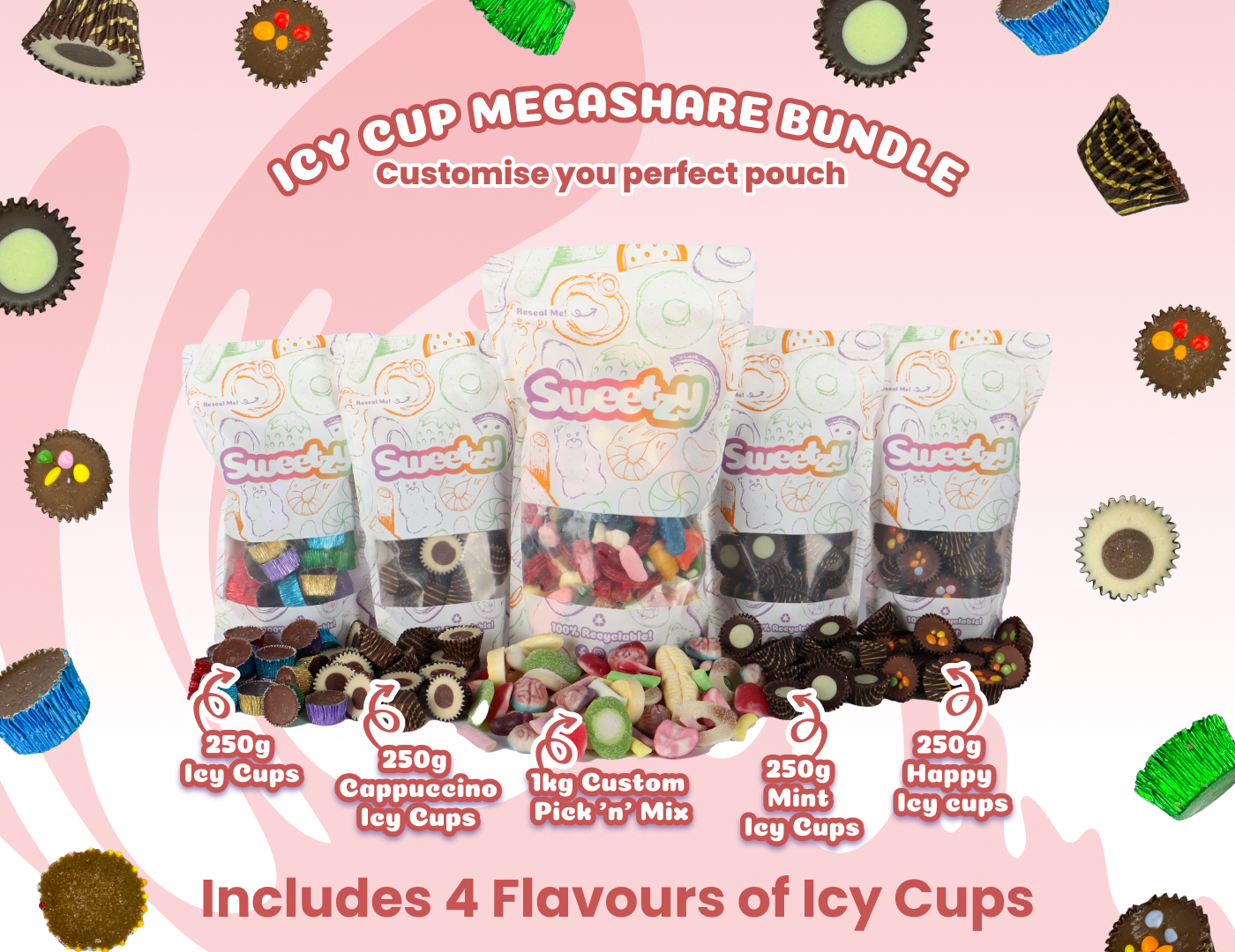 This bundle includes all four of our Icy Cup flavours, plus a fully customisable 1kg Pick ‘n’ Mix bag — all for just £20 when you grab them together in this bundle.