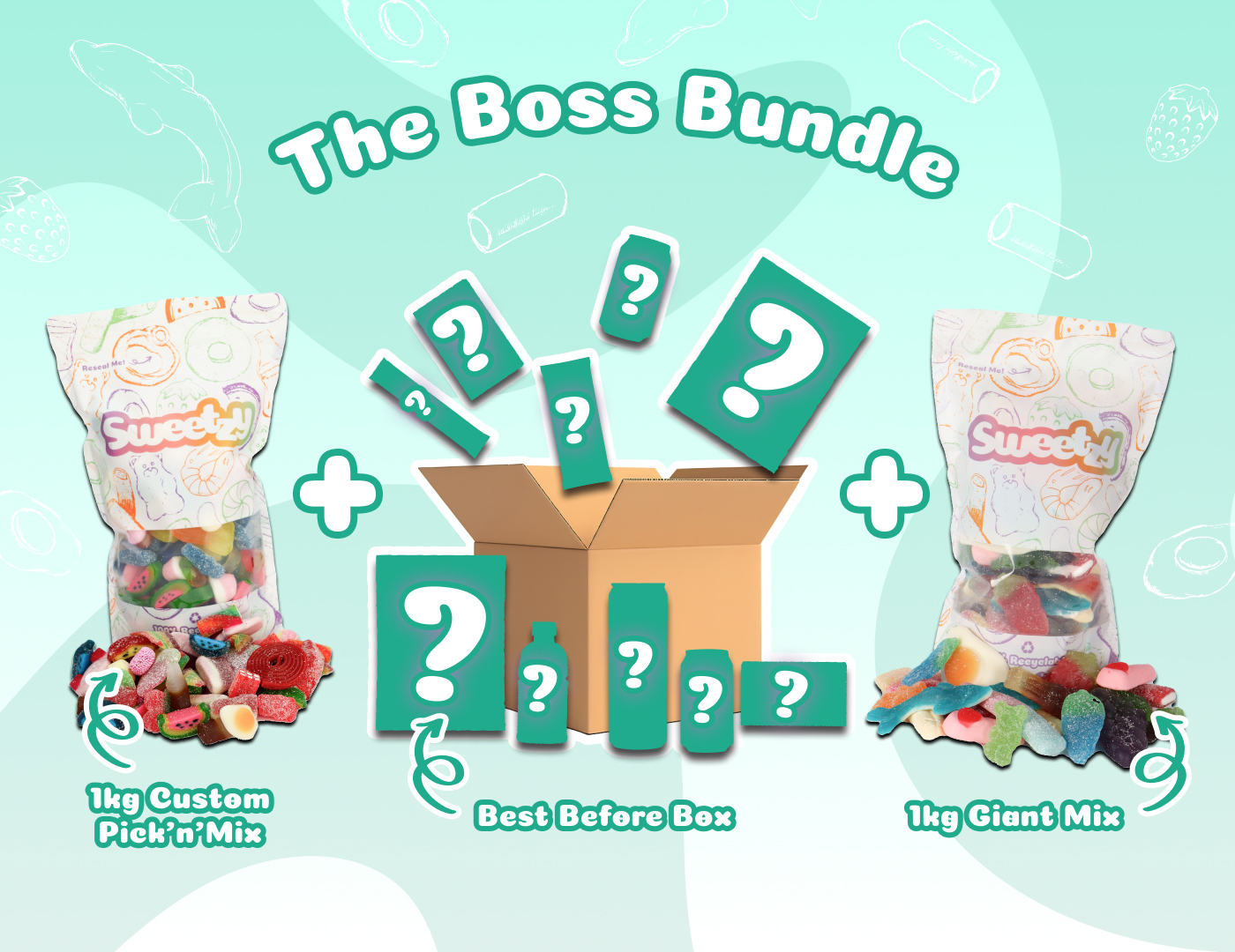 • 1kg Giant Mix – Oversized and packed with flavour, these are all your favourite well-known sweets, but GIANT.