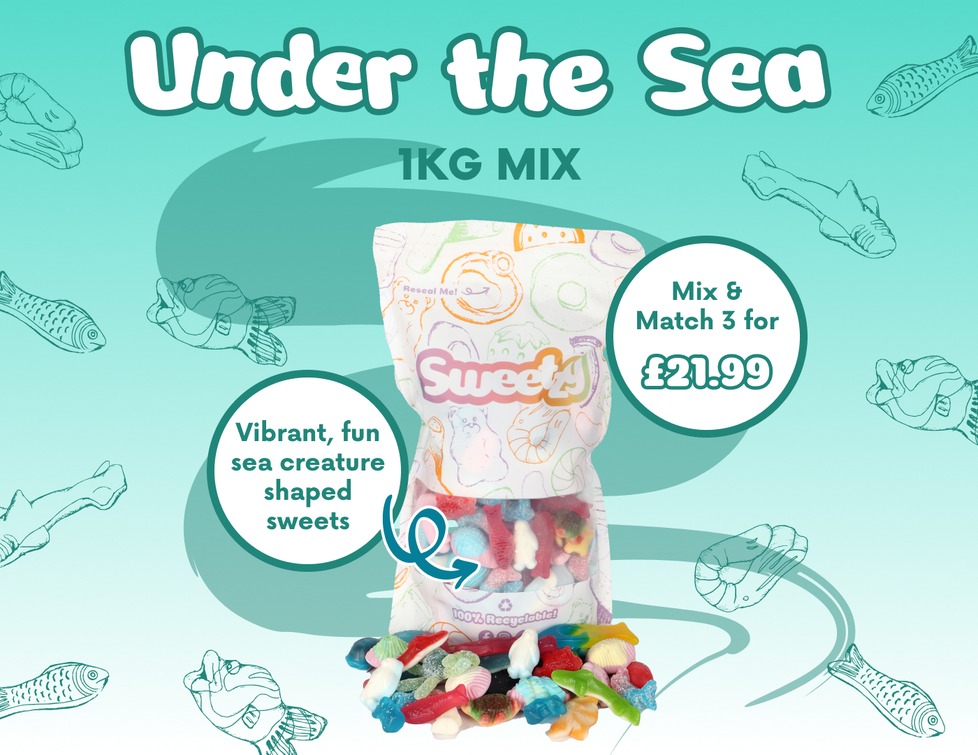 Our new and improved Under the Sea mix is better than ever, with even more variety and some new favourites.
